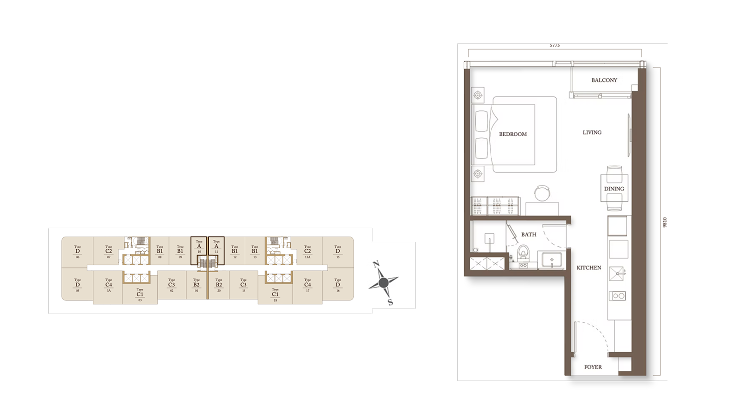 Type B2 - 772sf 1BR + STUDIO