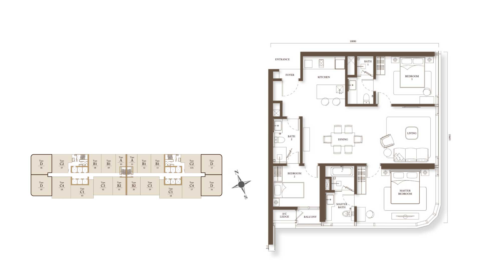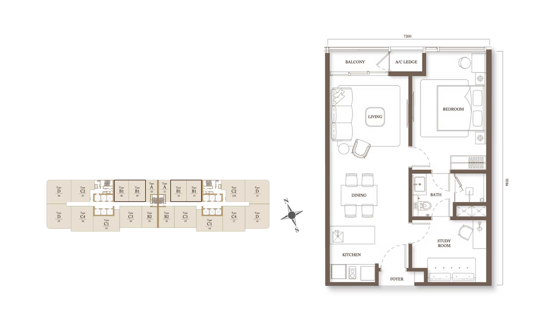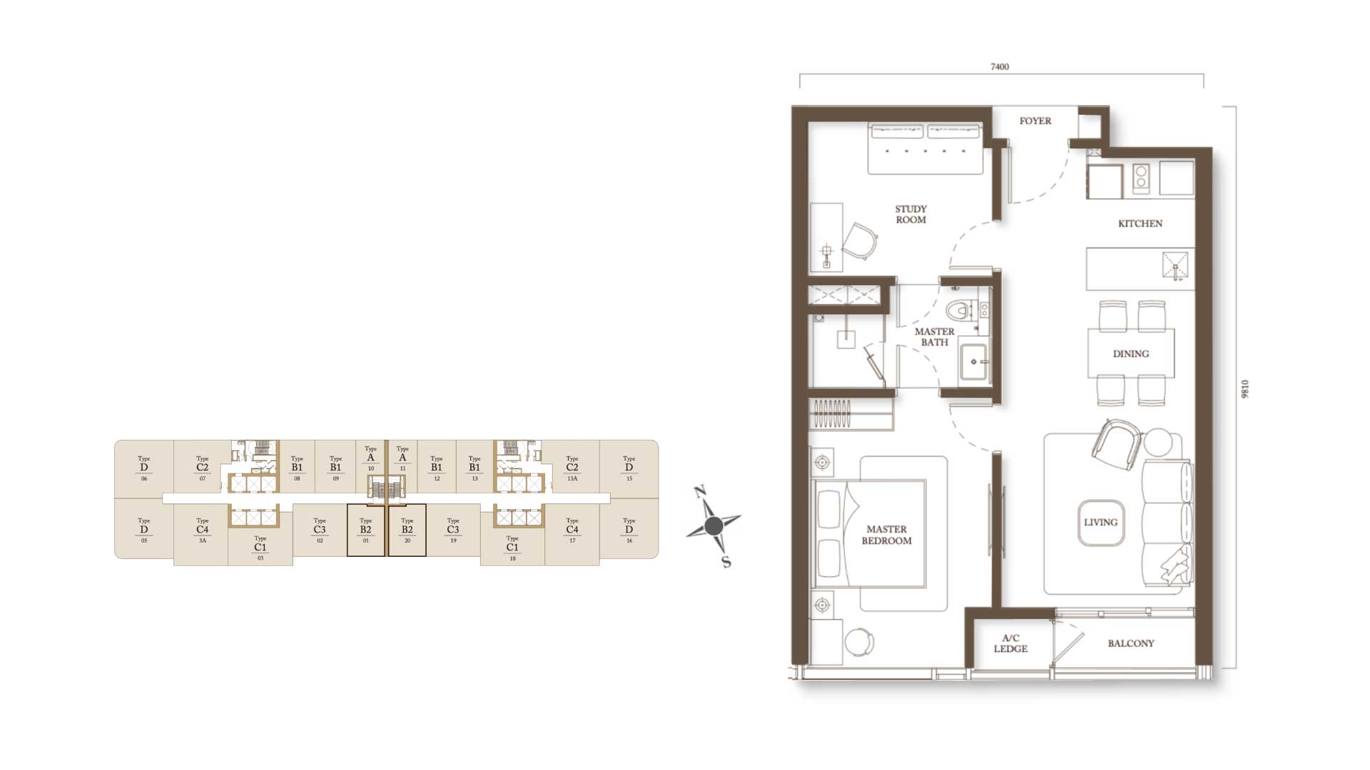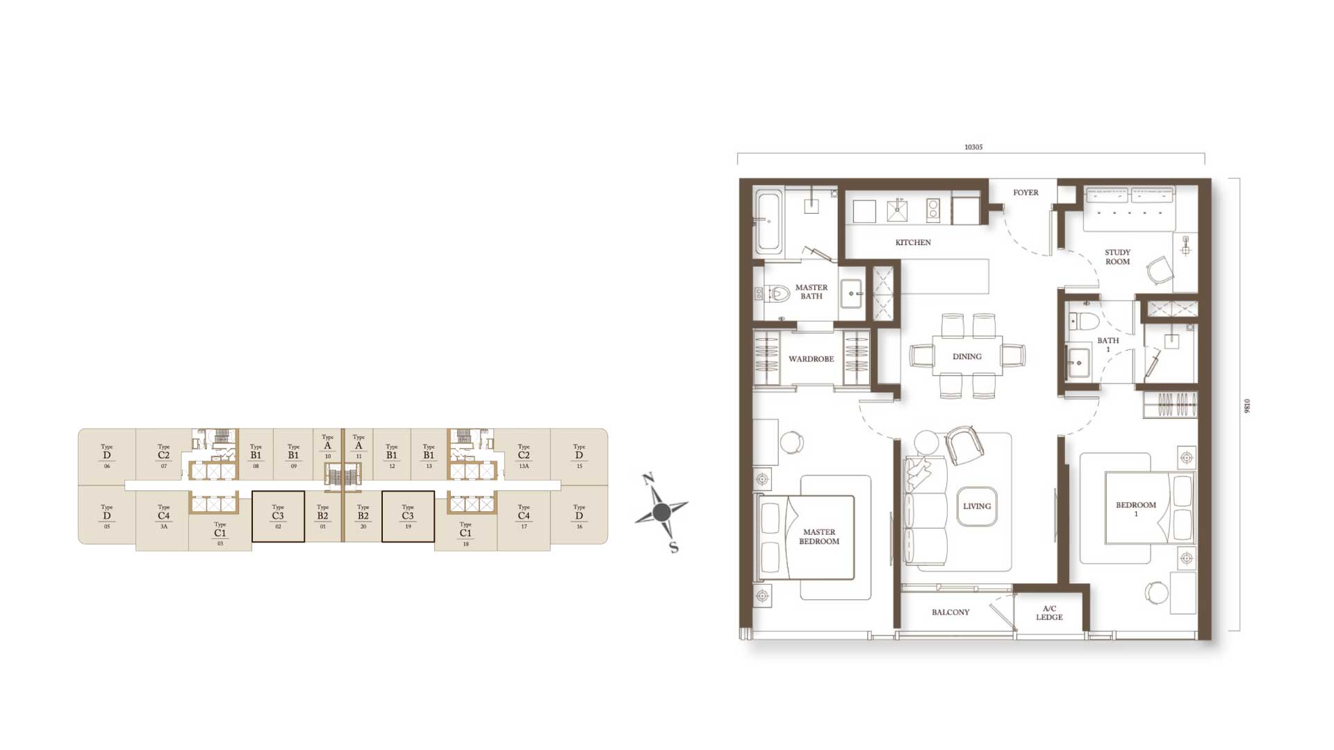 Type C2 - 978sf 2BR + STUDY