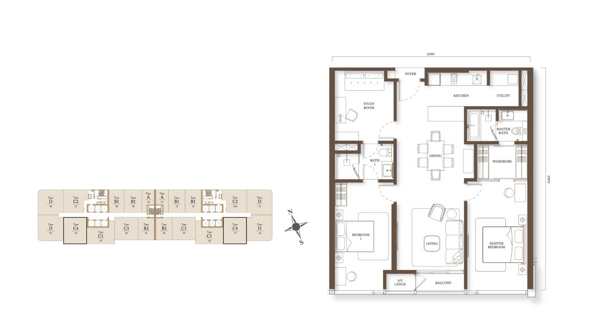 Type C4 - 1,272sf 2BR + STUDY